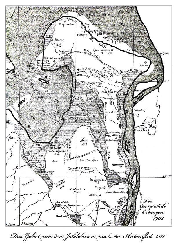 Die Landverluste im Jadebusen und zwischen Jade und Weser waren erheblich. Arngast wurde zu einer Insel im Jadebusen. Der Jadebusen erreichte seine größte Ausdehnung, und es entstand ein Durchbruch zwischen Jade und Weser.